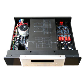 特别需要说明的是该机为进一步提高读蝶的可靠性和刻意提升读碟的能力,该机特别选择了读碟能力特强的高品质日本三洋机芯,并在机箱中部专门为机芯基础部分增加了厚重的、化震能力很强的金属防震基座,使CD机播放音乐时的抖晃现象大大降低,光头读碟系统稳如泰山。并对这部分可能对模拟音频电路造成干扰的机芯、解码板等加以良好的电磁屏蔽,为声音的细节和最大限度的减少音乐的背景噪声奠定了良好的基础。