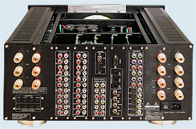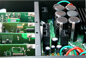 高大威猛的全铝合金框架结构,造型尤如HI-FI发烧机型,外露式巨型散热器经和典永恒的黑白色彩搭配,外观一改以前的风格,两个大旋扭分居功放两边,折射出眩目的金属高光,中间选用掌上电脑(PDA)用的65K色TFT真彩色为液晶显示屏喷沙面板,整体风格前卫、大气、现代感十足!